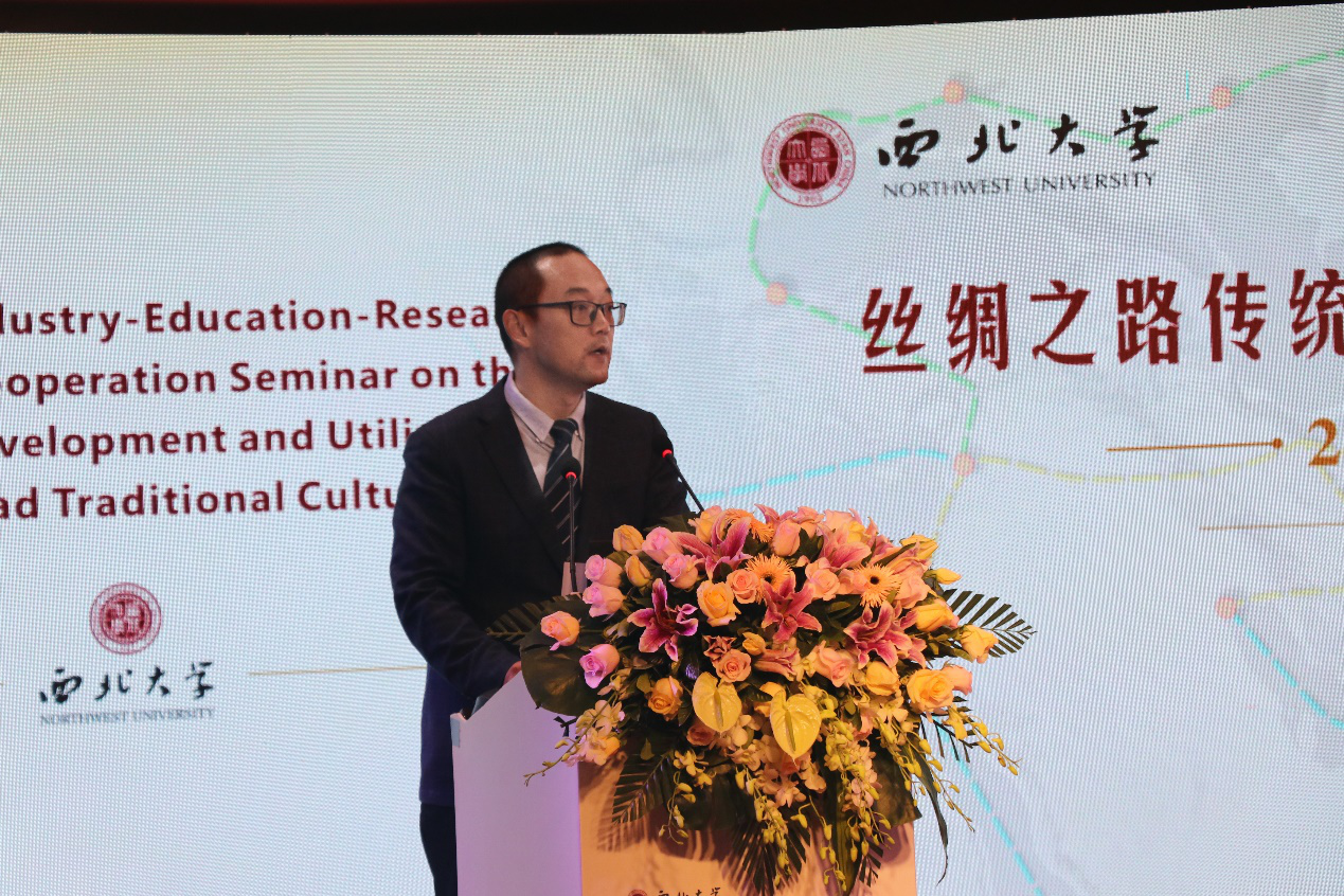 “丝绸之路科技考古与文化遗产保护创新引智基地”主任、公司副经理温睿讲话