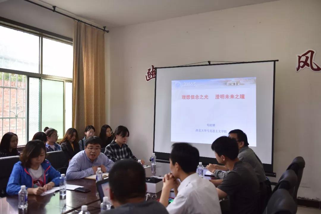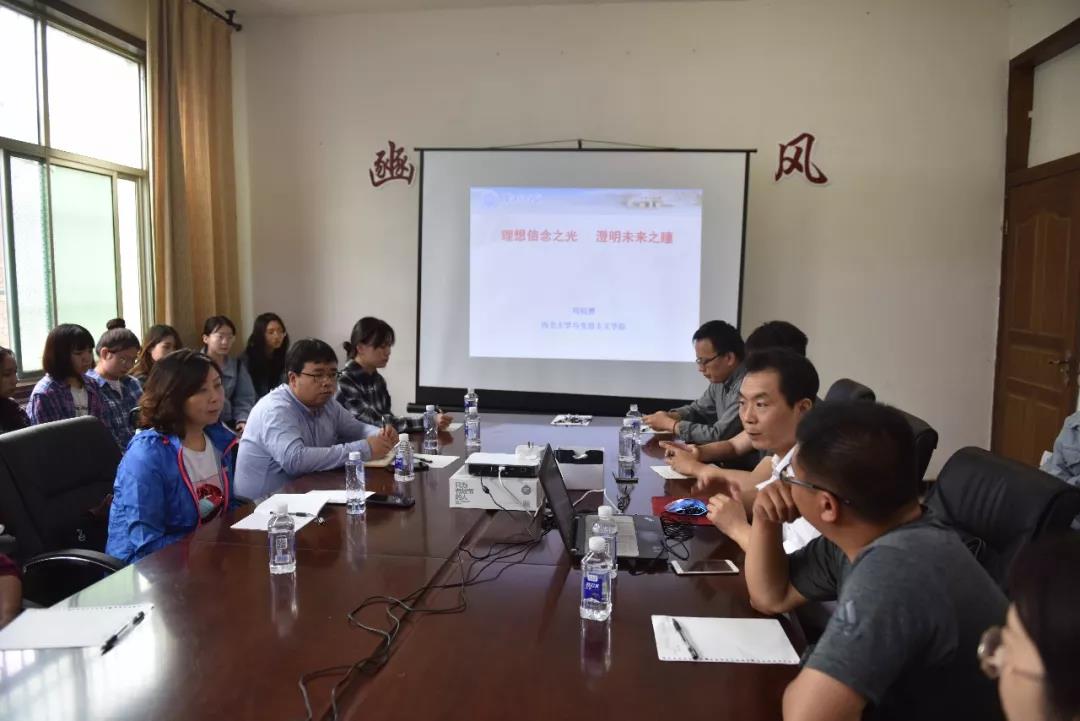 之后,所有师生在考古基地会议室聆听了由太阳成tyc122cc马克思主义公司苟昭赟老师带来的题为《理想信念之光 澄明未来之瞳》的思政课。